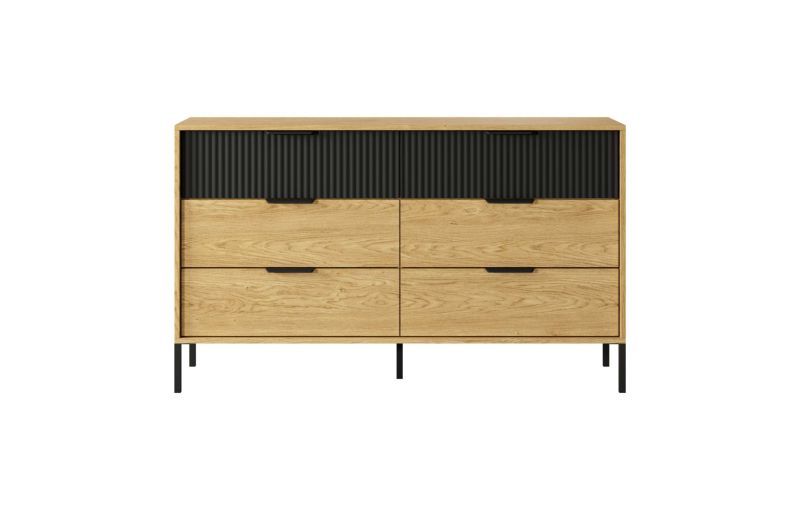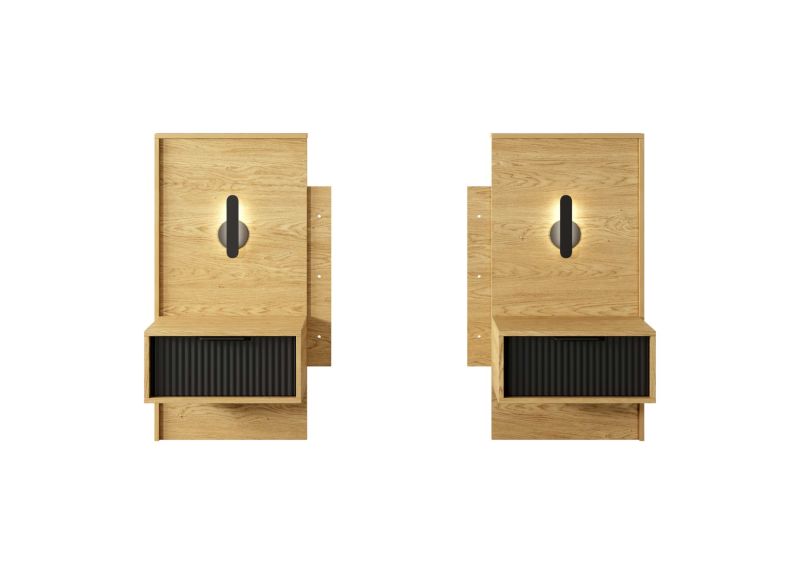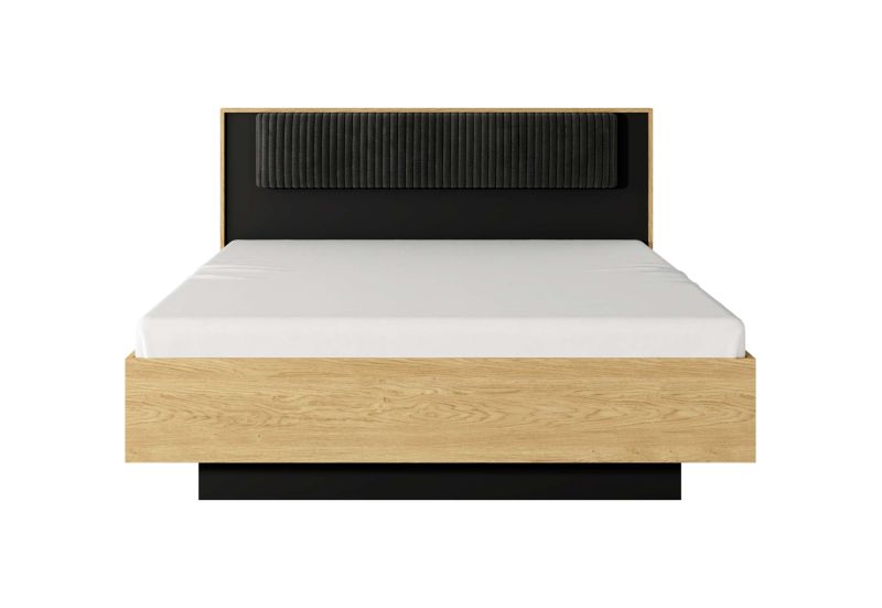 يتميز السرير بلوح رأس مُضلّع يعكس لمسة عصرية أنيقة، فيما يضفي التشطيب الدافئ أجواء ترحيبية وهادئة. أما حلول التخزين الذكية في الخزانة ووحدات التخزين، فتضمن لك ترتيبًا عمليًا يحافظ على مساحتك منظمة دائمًا.