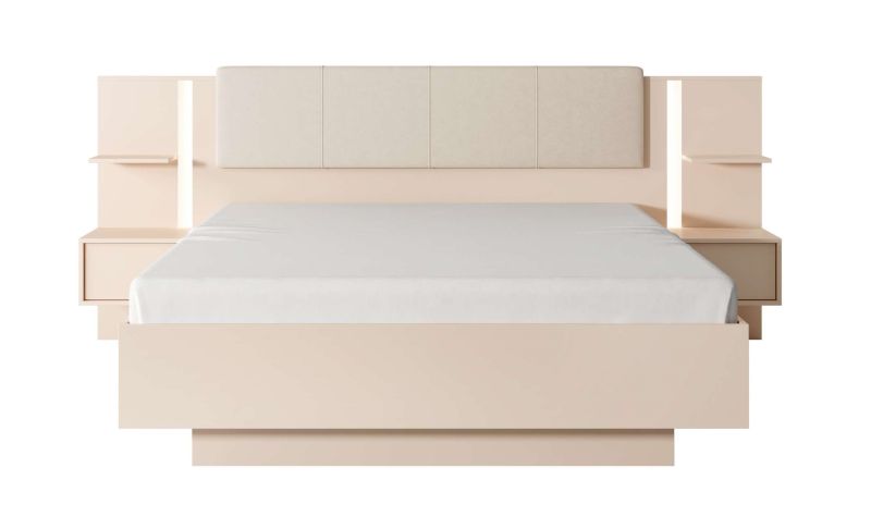 طقم غرفة نوم إلارا من الخشب الطبيعي لوح رأس مُبطن مع رفوف جانبية