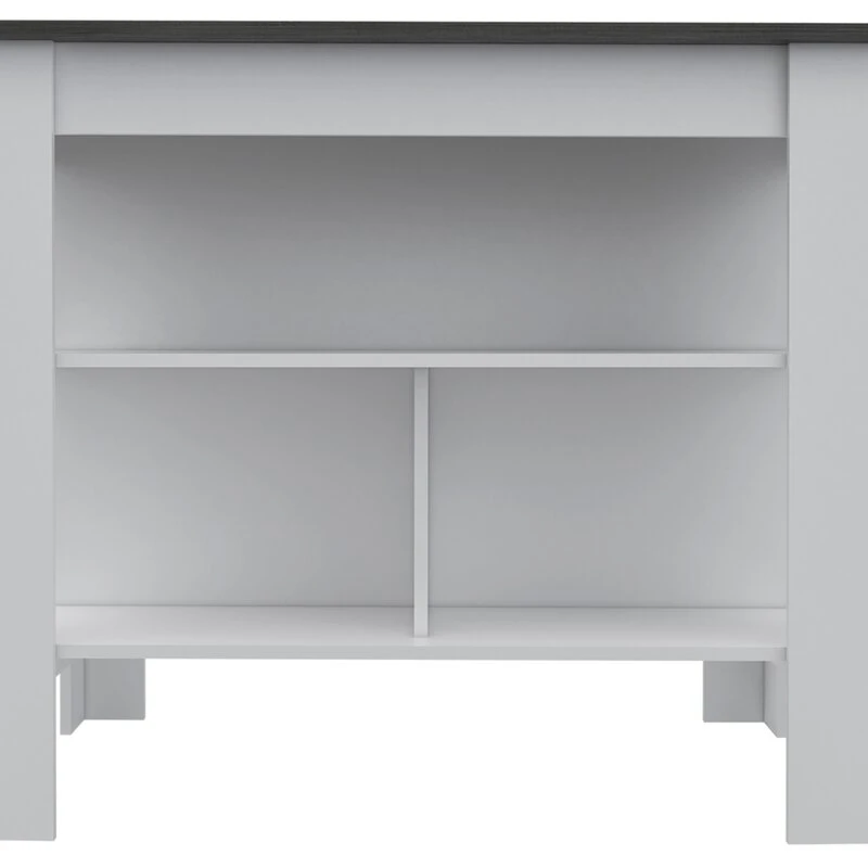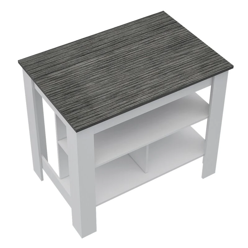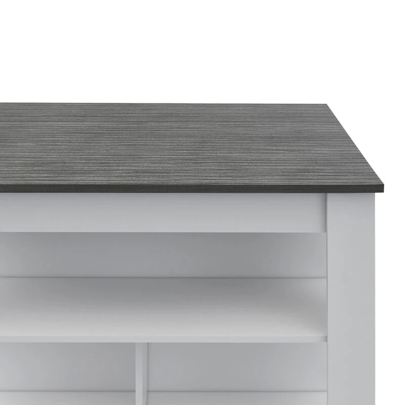 • سطح الطاولة الكبير يتيح مساحة كبيرة لإعداد الطعام، في حين أن الجانب المقابل للرفوف يوفر مساحة إضافية للتخزين.