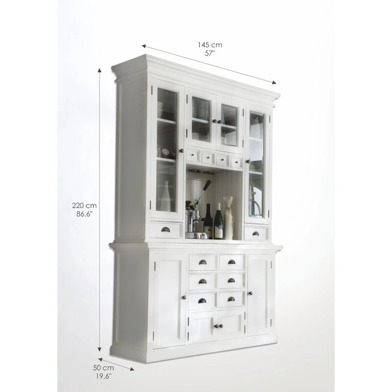 • يحتوي القفص العلوي على أربعة أبواب خزانة ذات ألواح زجاجية وستة أدراج إضافية، أربعة منها صغيرة ومثالية لحمل الشموع.