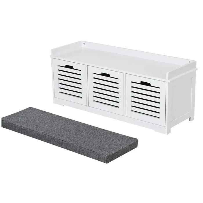 سيكون كلاسيلي مقعد تخزين الأحذية قطعة الأثاث الأفضل في غرفتك، إذ يتمتع بتصميم جذاب ومعاصر كما يوفر مساحة تخزين كبيرة ومنسقة من خلال ثلاثة أدراج مكعبة الشكل تتسع لتخزين الأحذية او غيرها. كما انه مزود بمقعد مبطن بالاسفنج من أجل توفير الراحة أثناء تغيير الحذاء.