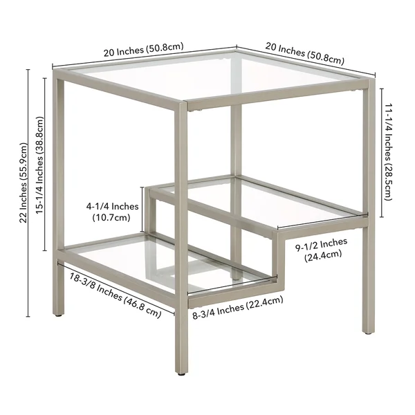 طاولة كوفينو الجانبية تجمع بين الزجاج والمعدن بتصميم أنيق وجذاب، مما يعطي إحساسًا بالرحابة والأناقة في غرفة المعيشة أو غرفة العمل. يتناغم الإطار المعدني البسيط مع الطراز الحديث لمنتصف القرن، ويضيف لمسة نهائية لامعة لتحقيق مظهر عصري وجذاب.