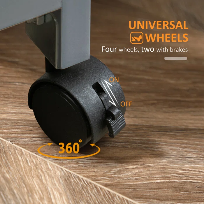 3. يمكن تحريك جزيرة المطبخ بسهولة من خلال العجلات الأربعة ، وكذلك تستطيع تثبيتها من خلال قفل زوج من تلك العجلات.