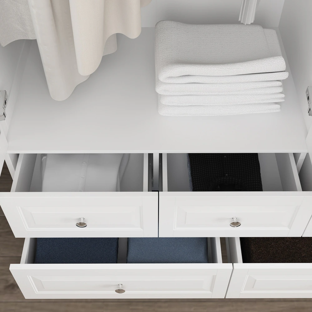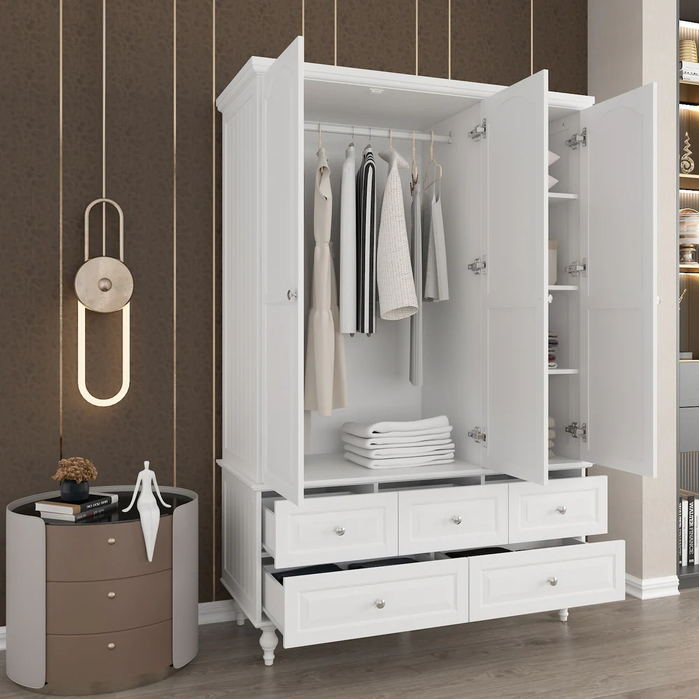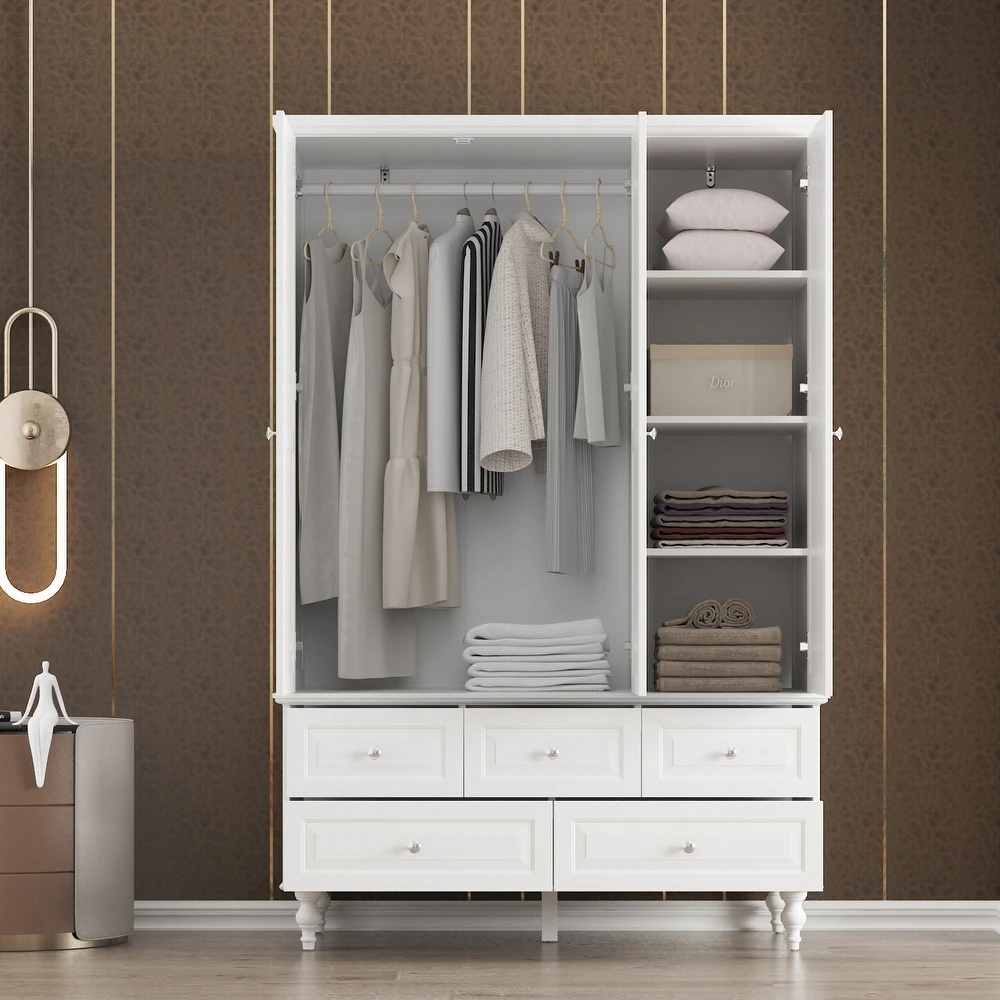 هل تحتوي الخزانة على أدراج وأرفف داخلية؟ بالتأكيد، تحتوي على 5 أدراج واسعة و 3 أرفف عملية بالإضافة إلى علاقة ملابس لتلبية جميع احتياجاتك.