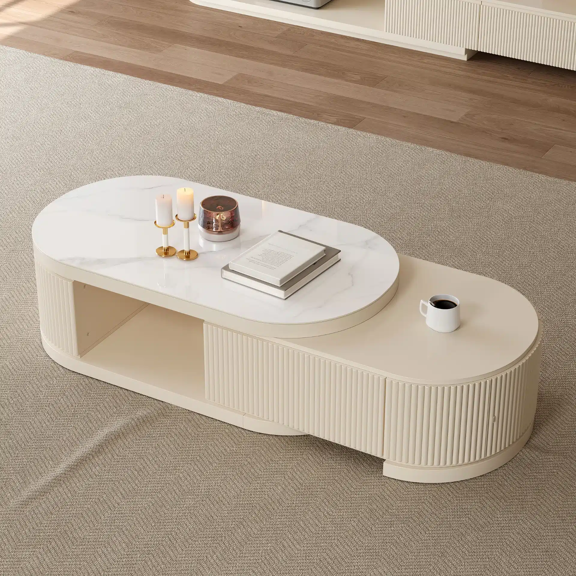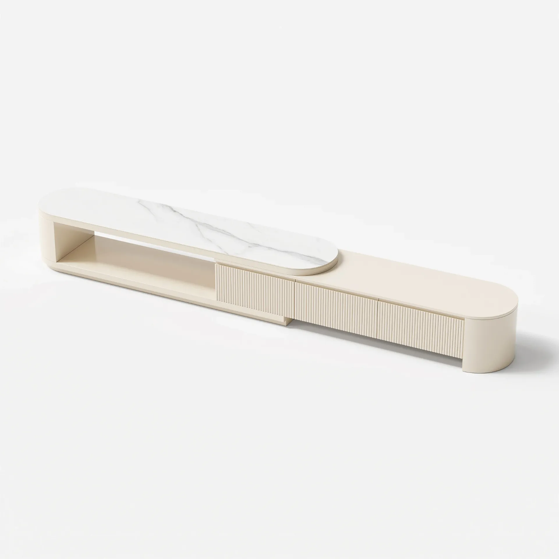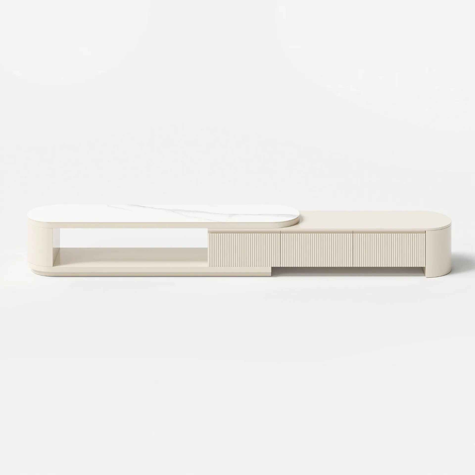ليڤانتو طقم وحدة تلفزيون وطاولة قهوة بسطح بديل الرخام قابل للتمديد