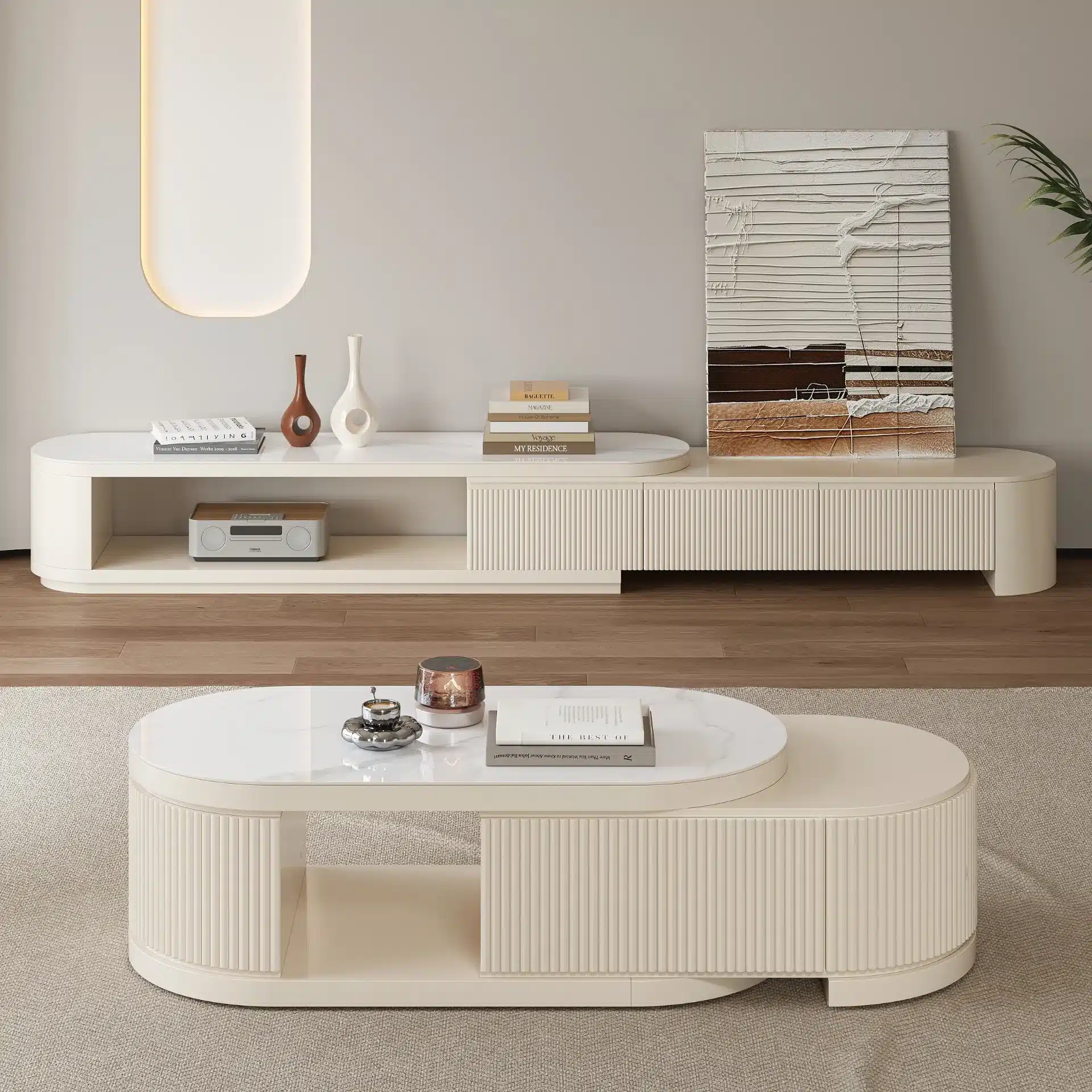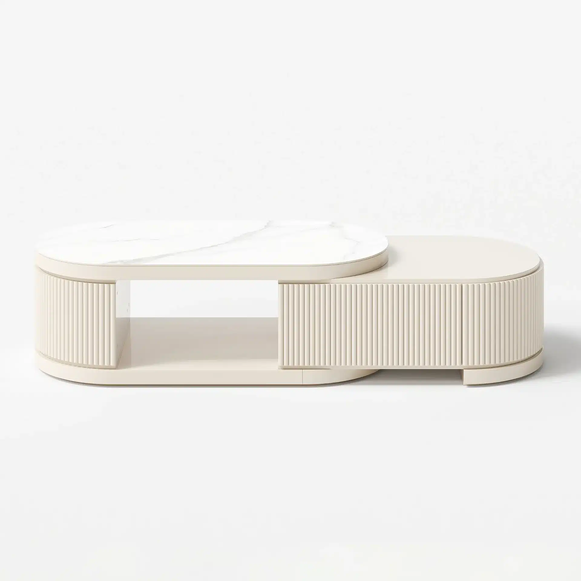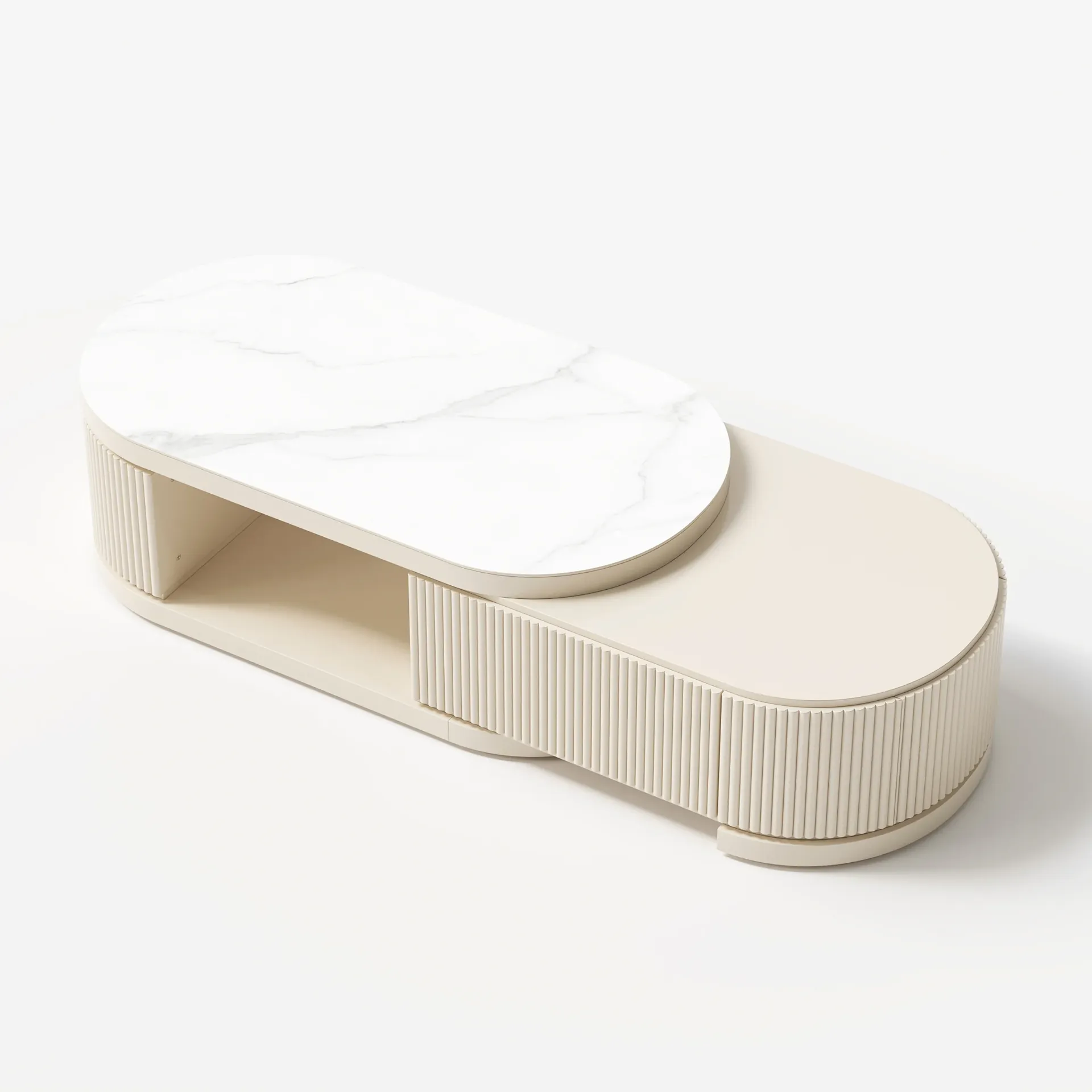 ليڤانتو طقم وحدة تلفزيون وطاولة قهوة بسطح بديل الرخام قابل للتمديد