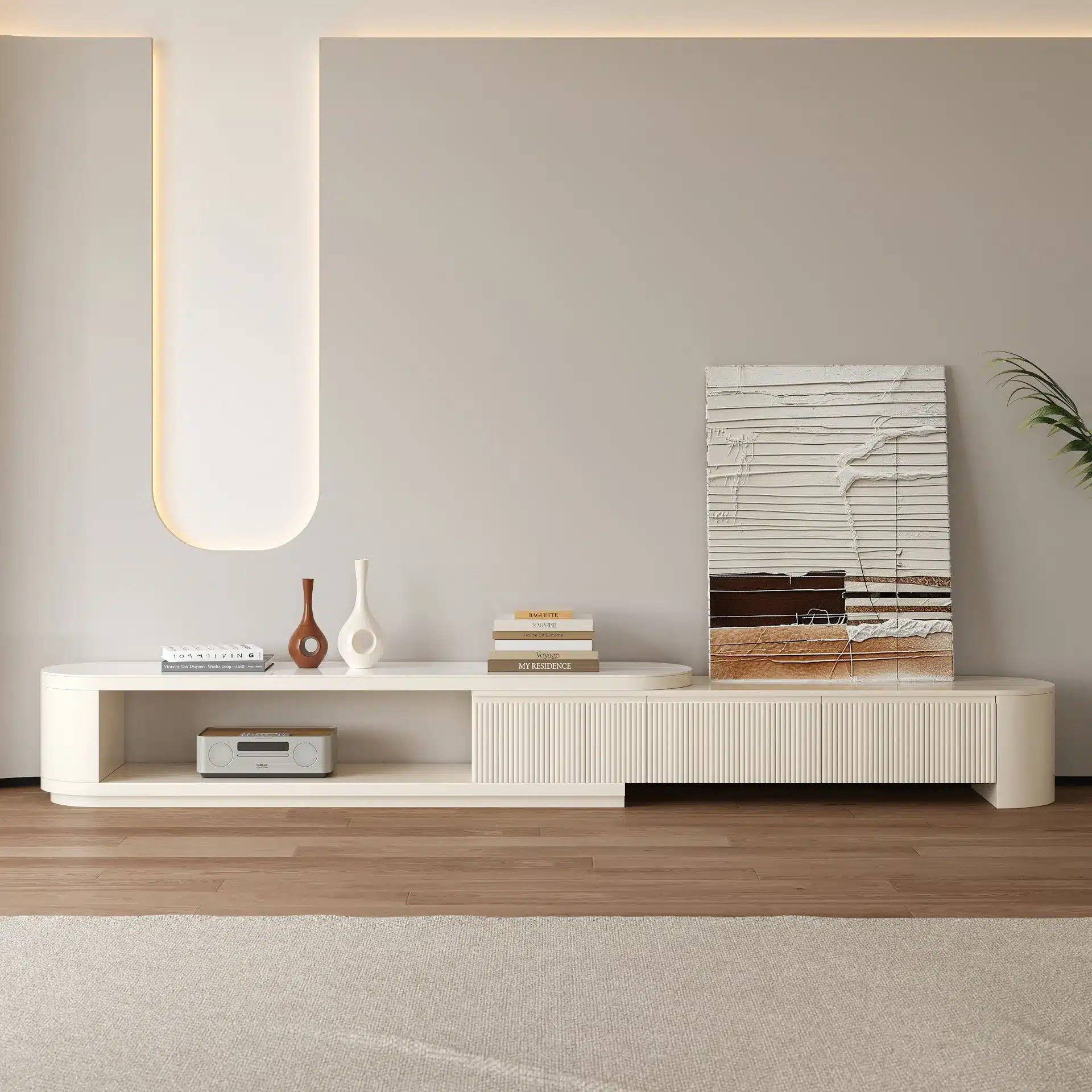 • وحدة تلفزيون قابلة للتمديد من 180 إلى 290 سم لتناسب مختلف المساحات.