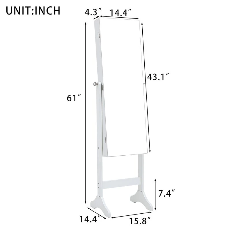 "خزانة إكسسوارات مجوهرات مع مرآة ستاند لوكسراس، تصميم عصري لتنظيم الأغراض الشخصية مع لمسة من الفخامة"