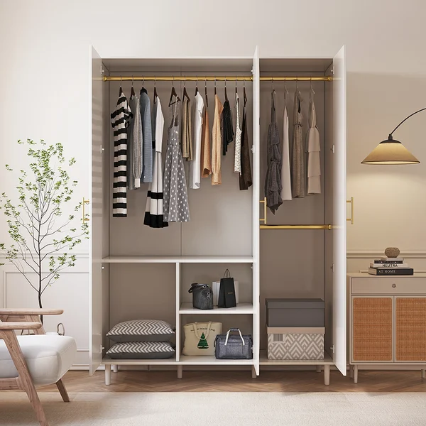 • مزودة بـ أرفف متعددة وشماعات داخلية لتخزين الملابس والأغراض الشخصية بطريقة مرتبة.