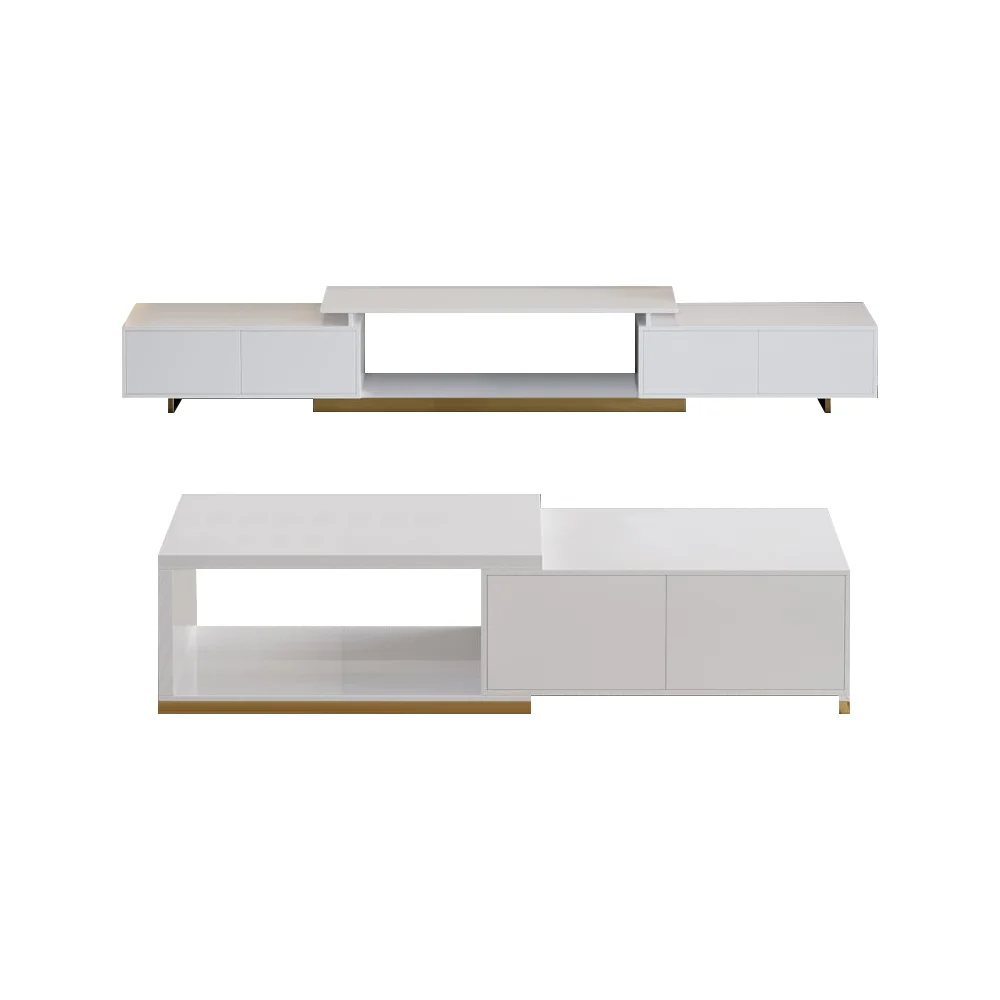 • طقم متكامل يشمل وحدة تلفزيون وطاولة قهوة بتصميم متناسق.