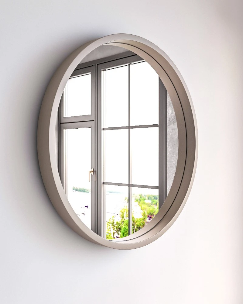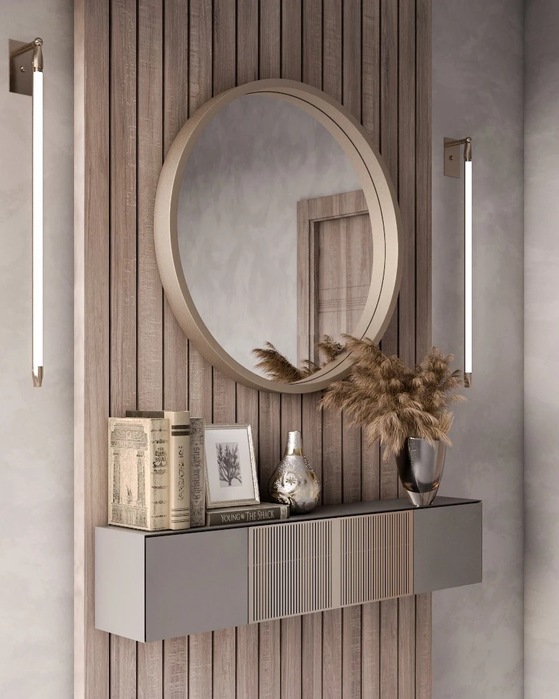 أورورا مراية دائرية خشب طبيعي تجمع بين البساطة والأناقة في تصميم واحد، وهي اختيار مثالي لمن يرغبون في إضافة لمسة من الفخامة إلى أي مساحة. تتميز المرآة بإطار من الخشب الطبيعي الذي يوفر لها قوة ومتانة، مما يجعلها خيارًا رائعًا للاستخدام اليومي في الحمام أو مدخل المنزل.