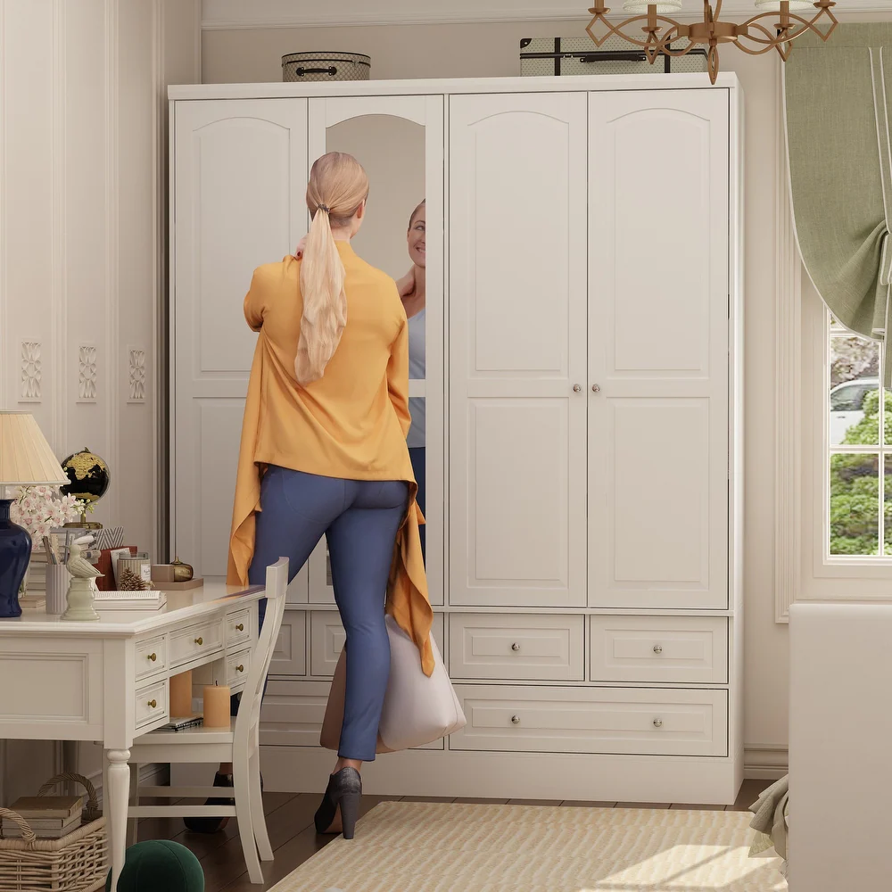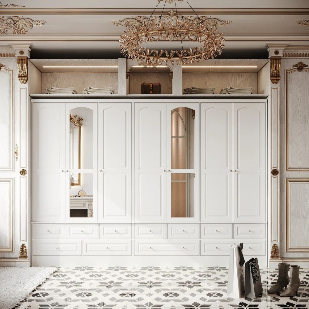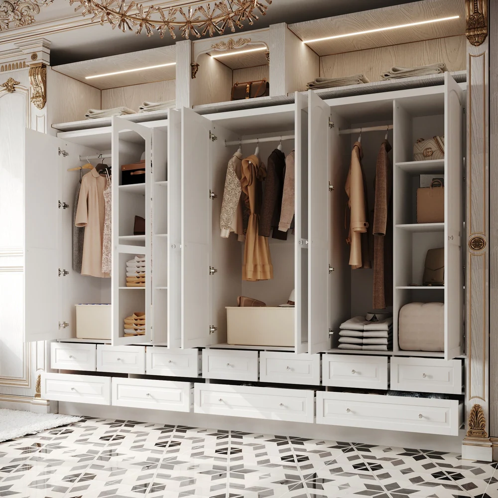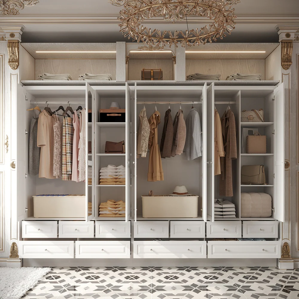 • تتضمن أرففًا وأدراجًا واسعة تتسع لملابسك وإكسسواراتك والأحذية والحقائب وغيرها.