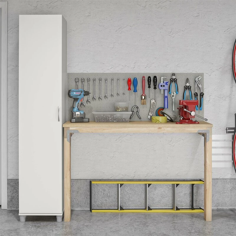 • باب خشبي مغلق: يساعد على إخفاء الأغراض وتخزينها بطريقة مرتبة.