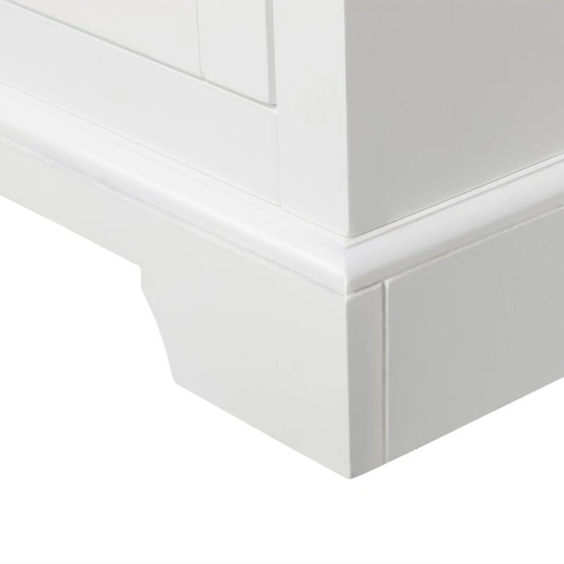 تم تصميم الخزانة من خشب طبيعي عالي الجودة، مما يضمن المتانة والطول الطويل. اللون الأبيض النقي يضفي على الخزانة مظهرًا أنيقًا ويتناسب مع مختلف أنواع الديكورات الداخلية، مما يجعلها خيارًا مثاليًا لأي حمام.