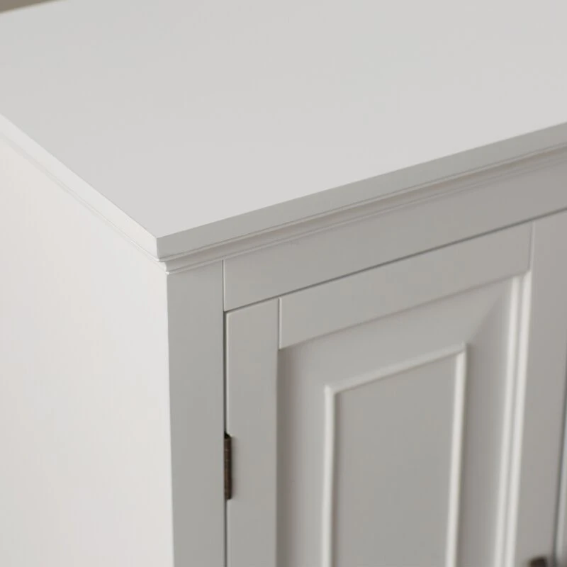 تتميز خزانة الحمام الأرضية بتصميم عصري وأنيق مع ثلاثة أرفف داخلية توفر تخزينًا عمليًا ومرتبًا للمناشف وأدوات النظافة الأخرى.